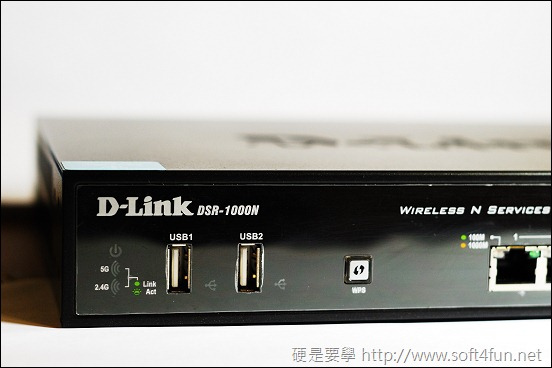 DSR-1000N 還提供了兩組 USB 插座,只要插上隨身碟或印表機,就可以從網路上直接使用。如果搭配 D-LINK 的 3G 網卡,更可以直接將 3G 網路作為備援,非常方便的設計。