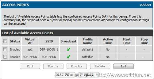 DSR-1000N 無線網路最多可以設定4組 AP,每組 AP可擁有專屬的安全性設定,同時不同 AP 間的裝置也無法直接互相連線,可以保護不同網路的安全。