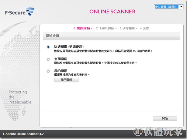 掃描程式有完整的中文介面,因此相當容易上手,只要依照畫面指示即可進行掃毒。