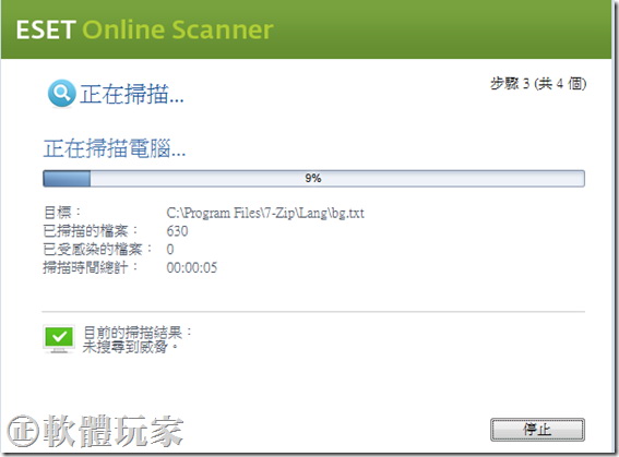接著會下載病毒資料庫,並開始掃描,也有友善的中文介面。