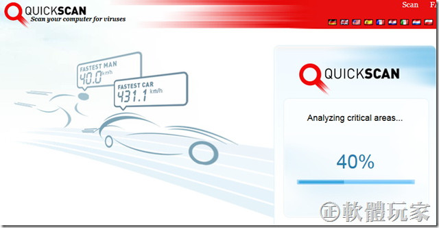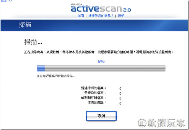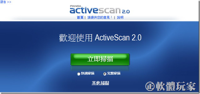 PANDA(熊貓)防毒公司來自西班牙,因為產品有中文化並引進台灣,在國內也有一定的知名度,PANDA的官方網站提供了Active Scan的線上掃描工具,僅提供掃描,不提供解毒的功能。