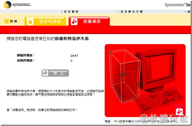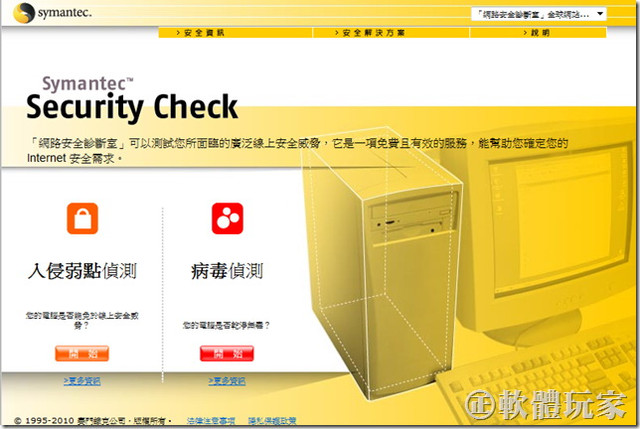 Symantec是個相當老牌子的美國資訊安全公司,早期的Norton掃毒軟體在國內可說是赫赫有名。該公司提供的「網路安全診斷室」提供了入侵弱點偵測及病毒偵測兩項功能,也都有完整的中文介面,不過由於這項服務的網頁實在太久沒更新了,老實說阿正老師也很懷疑它裡面的病毒庫有沒有更新,如果你想圖個心安掃掃看,也是可以試試看的。