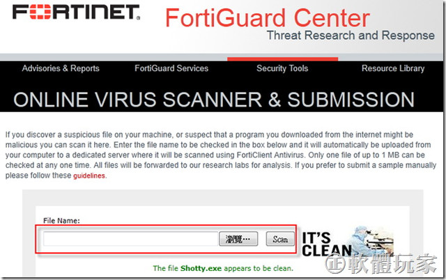 ※官方網站:http://www.fortiguard.com/antivirus/virus_scanner.html