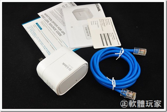 拆開包裝後,可看到DIR-505的體積相當輕巧,只比一般的變壓器大上一些而已,而且直接將變壓器跟插頭做在機身裡面,不用另外接變壓器或電線。